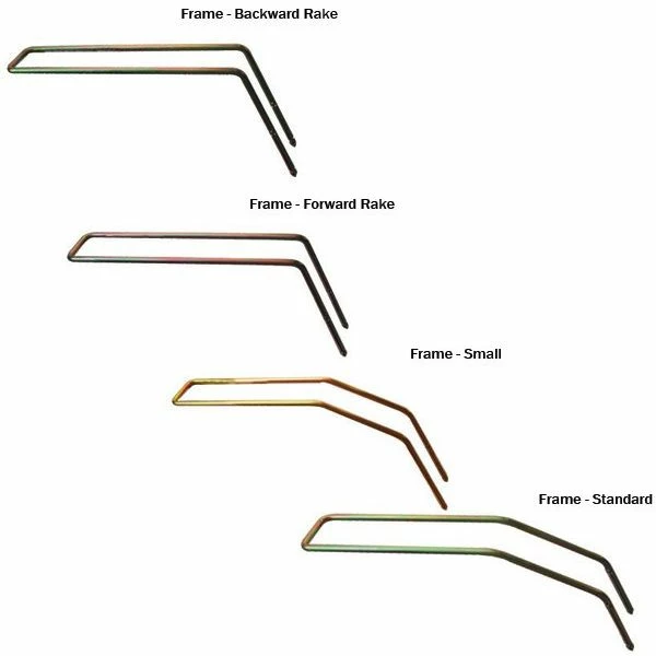 - Front Rake: Bike frames with a front rake (race style performance bikes with sloping geometry to front)