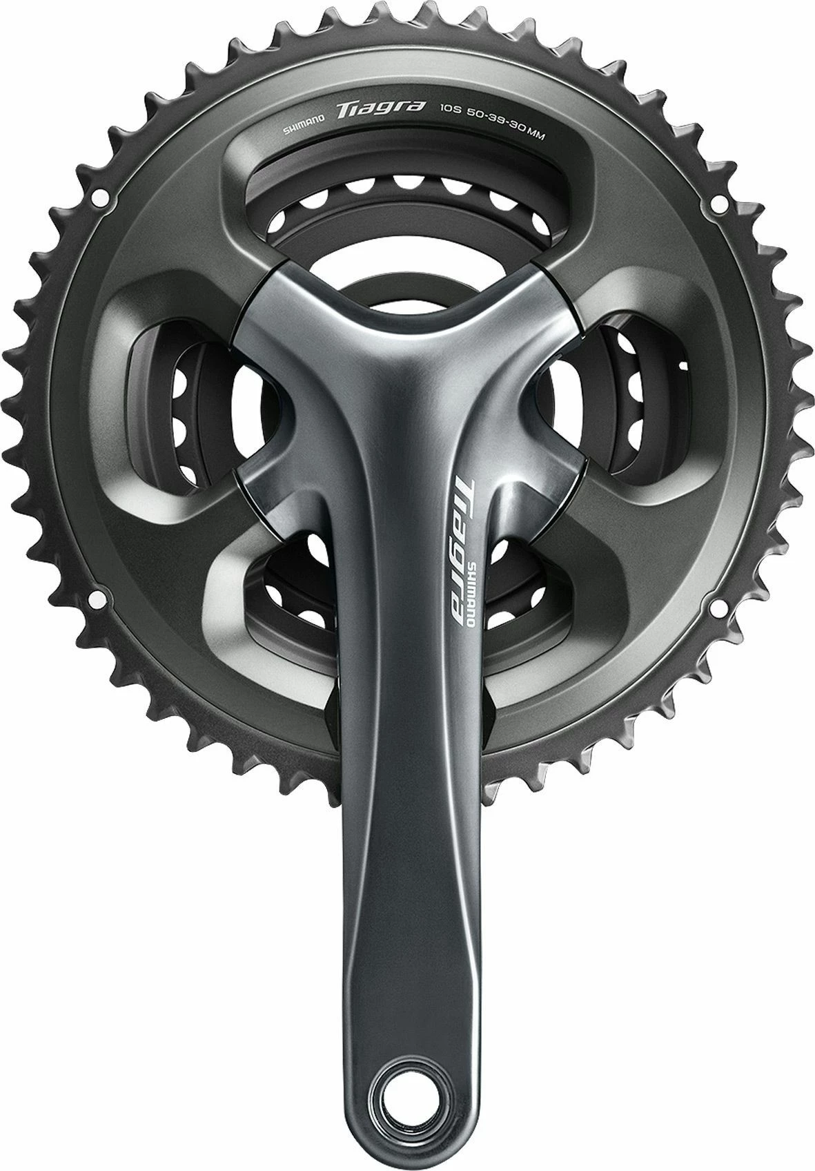 The Shimano Tiagra FC-4703 is a 3×10 speed crankset with 50-39-30T chainrings and an optimal balance between